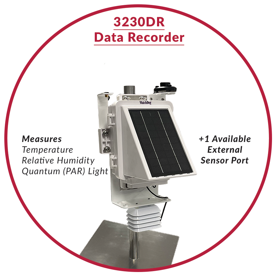 WatchDog Wireless Standard Plant Growth Station (Data Recorder - No Modem) measures Temperature, Relative Humidity, and Broadband PAR. With 1 additional available port, add an extra sensor in addition to those already integrated. View Current Conditions in the WatchDog App and run standard and customized reports with our SpecWare Software Download (required with purchase).